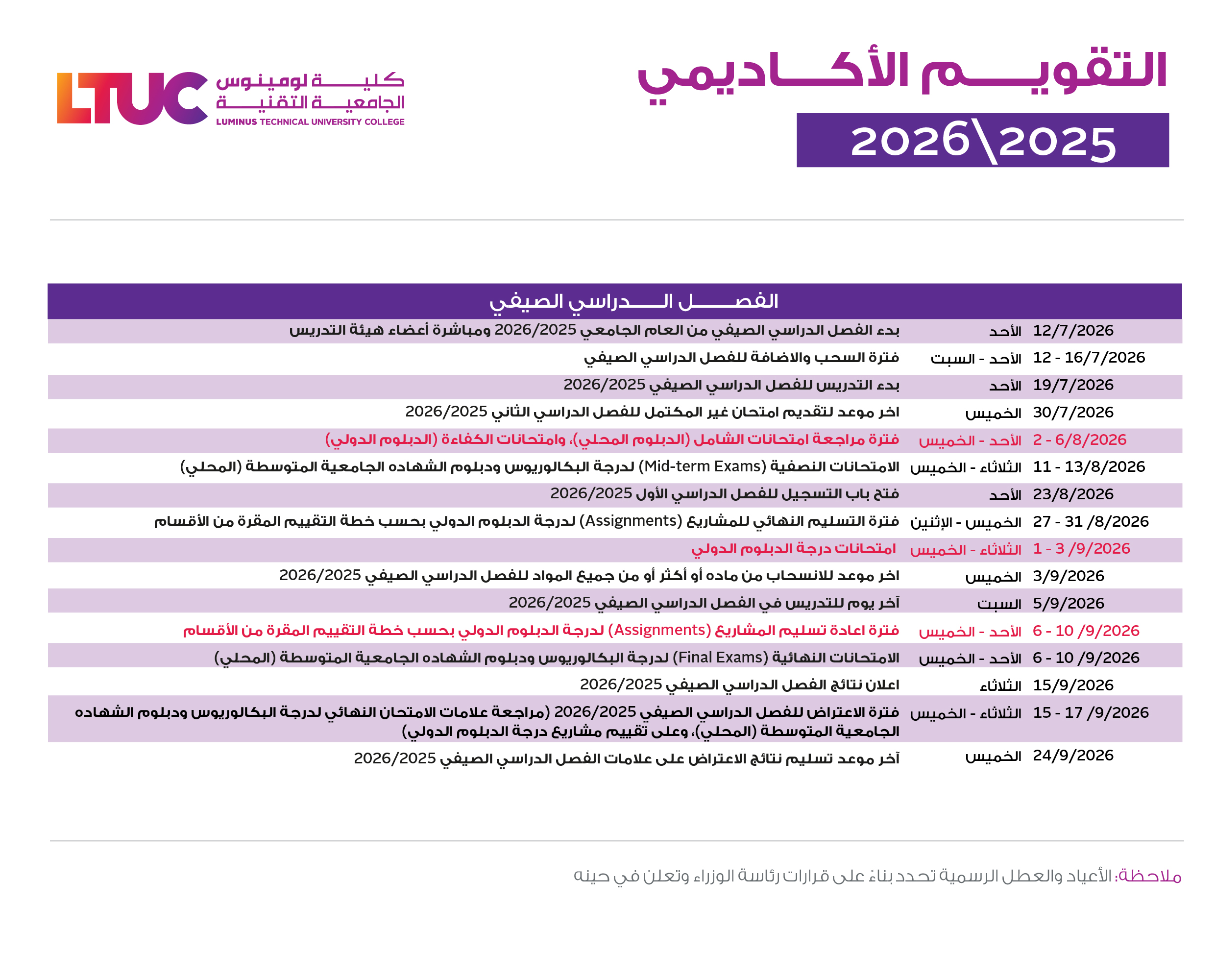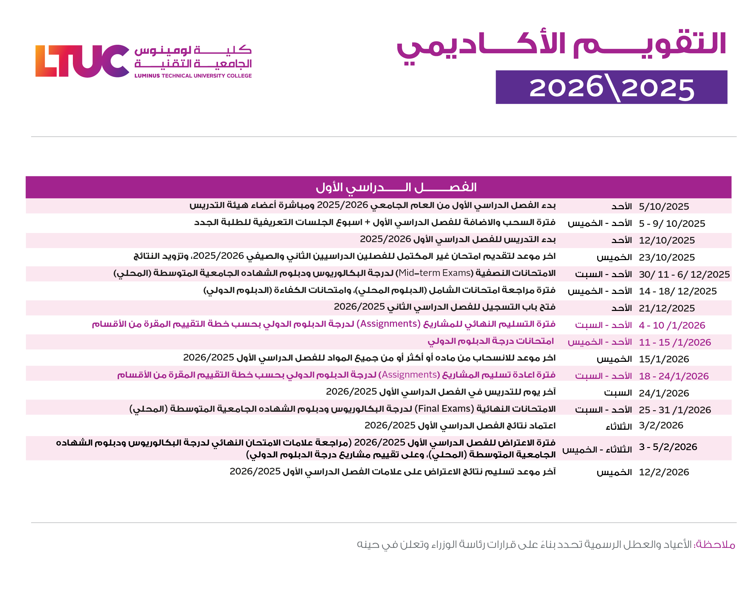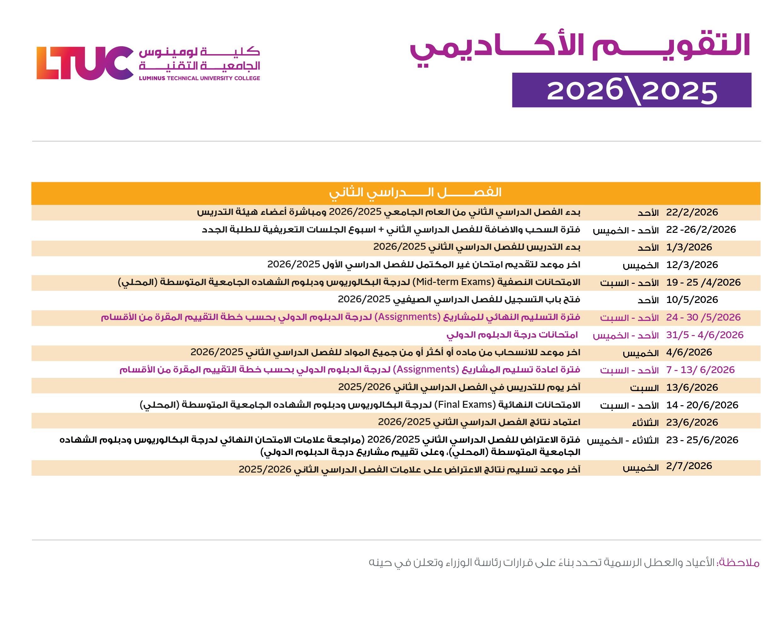 التقويم الأكاديمي